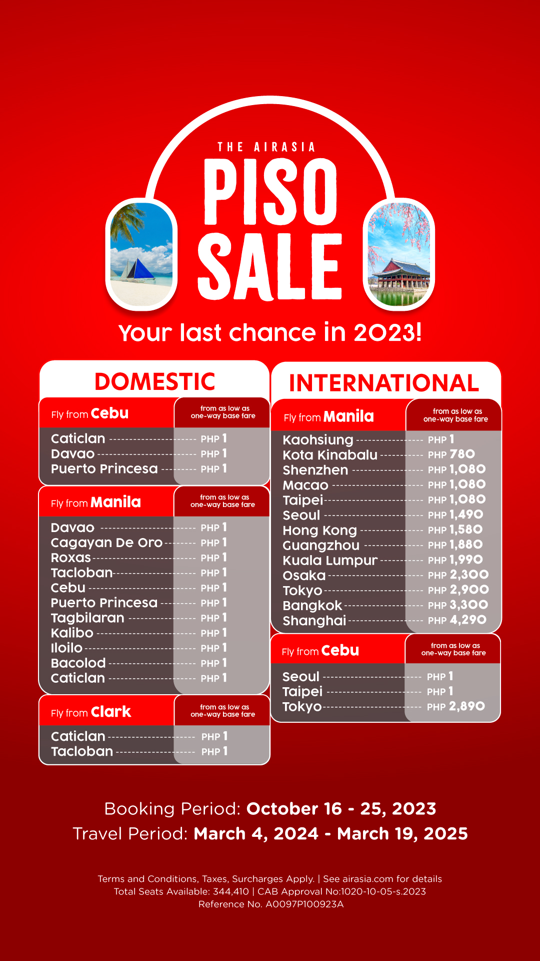 ✈️ Fly from as low as Php 1 one-way base fare to select AirAsia destinations when you book NOW!